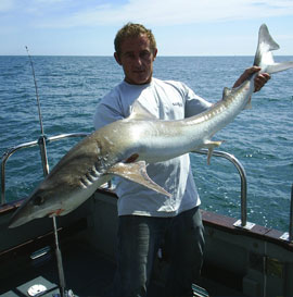 The Tope is one of the hardest fighting fish found in our waters of the Thames Estuary the premier area in the UK for this species and record holder of eighty two and a half pounds for this fish!